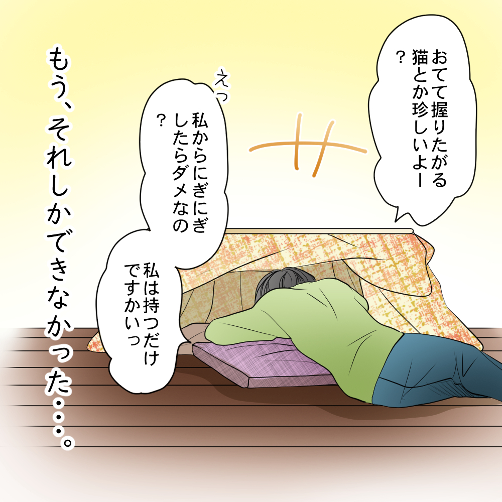 いつもやっていたように手をふにふにすると「それはヤダ」って感じで私の手から逃げようとする。