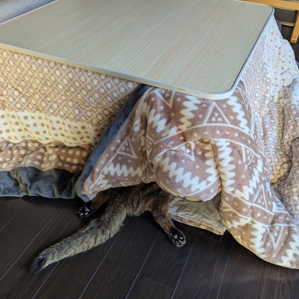3枚あるのですが、298話の頃の直を撮った写真で、抱っこして運んでいけば自分でこたつに入ってました。
