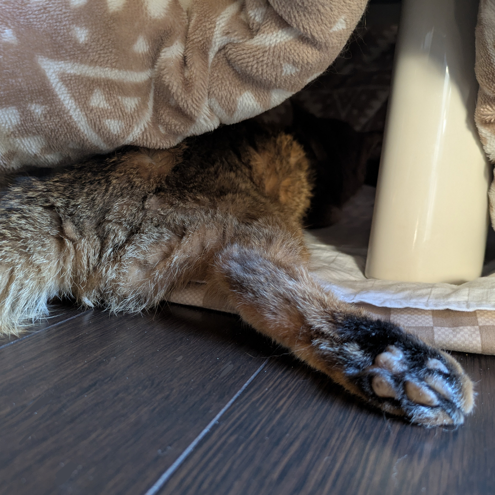 アビを飼っている方ならご存じかと思いますが、小豆色の肉球がベージュに変化しています。こんなところにも老化って現れるんだなと思ったものです。
